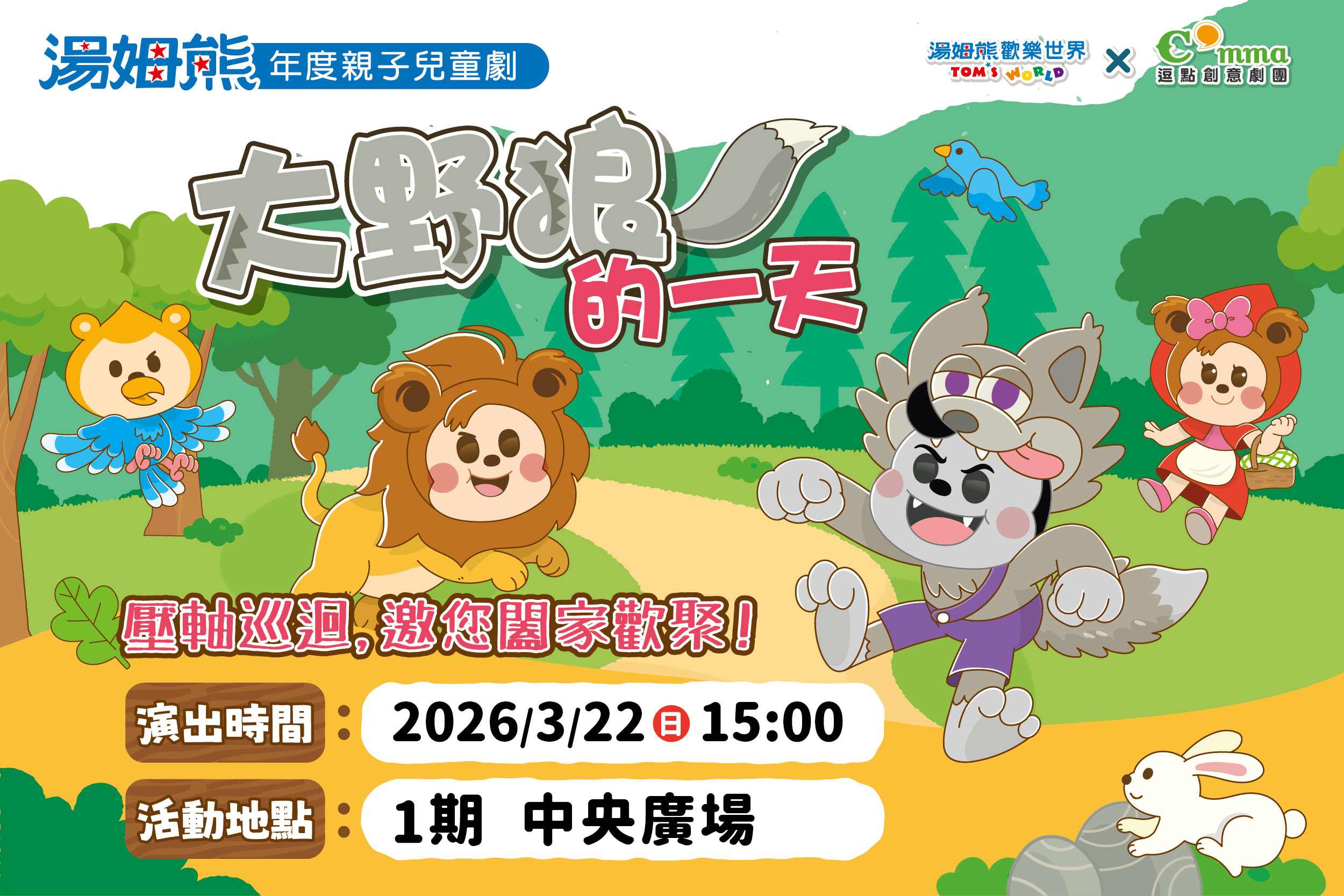 湯姆熊歡樂世界 3/22(日) 年度親子兒童劇